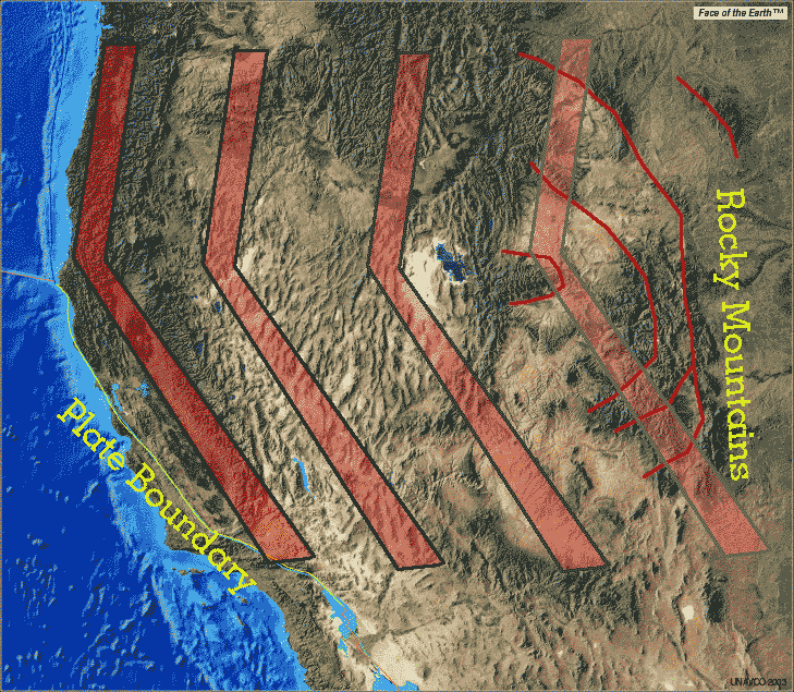 Now that we have established the timing of the uplift of the Rocky Mountains, we can discuss the various mechanisms that have been proposed to explain the initial uplift. 1) Flat Slab: As discussed earlier the idea of the shallow subducted Farallon plate is the most supported theory. However, the north-south curvilinear shape of the uplift, with an uplift axis that does not line up with the approach of the Farallon plate to the southwest, is problematic. If a Flat Slab did cause the uplift of the Rocky Mountains it would have had to bend around the Colorado Plateau to the southwest, or somehow involve the Colorado Plateau, without losing the force necessary to create the Rocky Mountains. ![]() 2) Plate Flexure: The east-west pattern of uplift shows a similar pattern to that expected to result from a foreland basin model with an eastward migrating forebulge. This model explains many mountain ranges on Earth. However, the axis of the uplift should parallel the plate boundary. Again the north-south curvilinear shape is a rather puzzling feature. Coeval flat slab subduction in the southwest and the passage of the Baja-BC exotic terrain to the northwest could have centralized westward forces along the axis of the Laramide Orogeny. To investigate this theory fully requires calculating the amount of depression and/or the resulting sedimentation during the Laramide Orogeny west of the forebulge. ![]() |