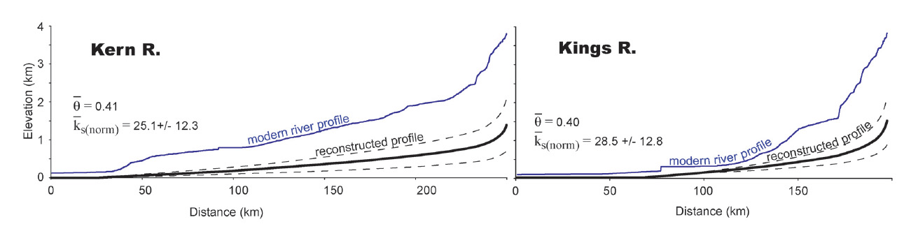 where ks is a steepness index and θ is the concavity. Although this relationship is based on empirical evidence, physical reasons for this correlation can be made. For example, the upstream contributing drainage area will contribute to river discharge. As the drainage area increases downstream, so will discharge which enhances stream power and the capacity for a river to incise. This increase in discharge also allows the river to carry the same amount of sediment with a lower gradient.