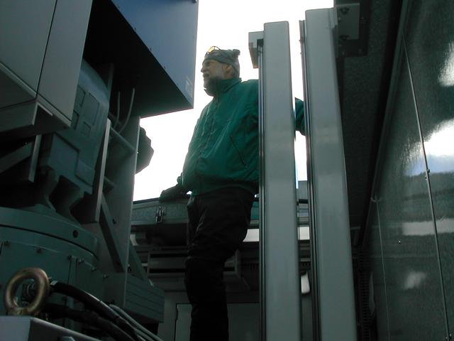 Richard, waiting to take a look inside. Now we just have to be patient and wait for the calibration before we start pushing buttons. (Hey, Rob! Do us all a favor and ask before you push any!)