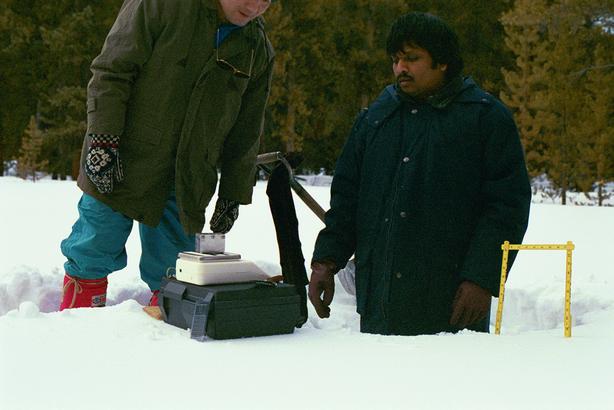 Toshio and ?? (from Sri Lanka) measuring in a snow pit.