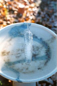 of 26 Jan was 24 degrees [F]. The bird bath is made of glazed pottery,