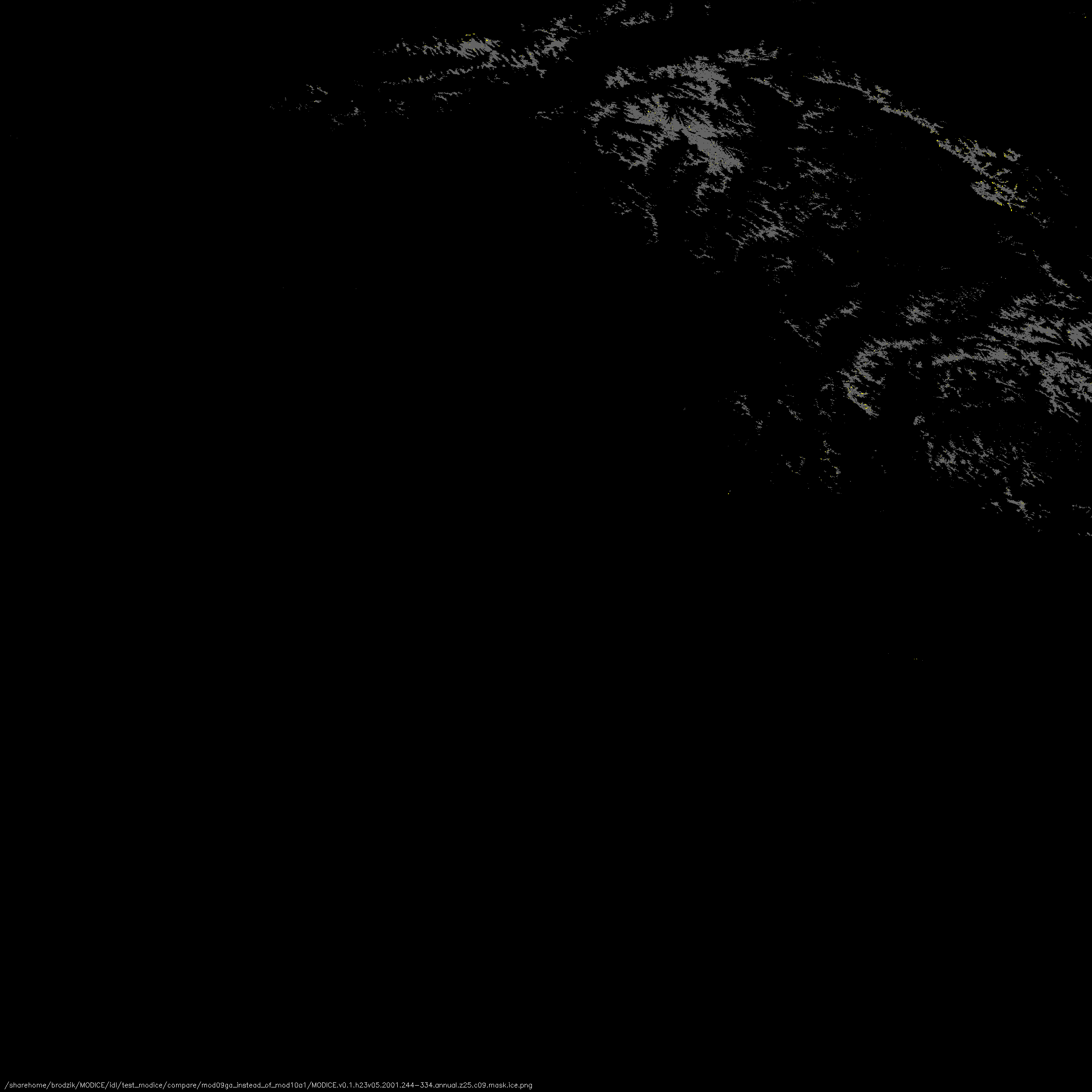 First row is just MODICE output at each step of the way, gray=ICE, yellow=NEVER_SEEN. Data are h23v05, 2001 (sep1-nov30).